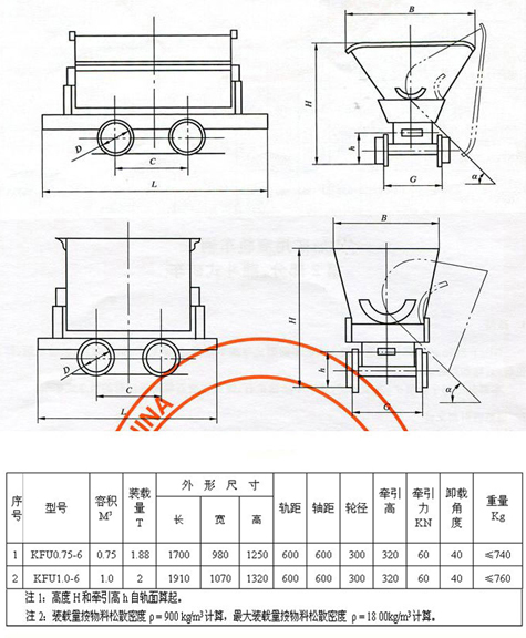 KFU翻斗式礦車(chē)技術(shù)參數(shù)及標(biāo)準(zhǔn)