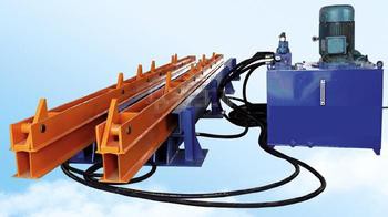 本實用新型提供了一種液壓驅動,安裝利便,堅固耐用,使用利便,運行平穩,沖擊力小的液壓板鏈式爬車機,包括傳動裝置、導向輪裝置、尾輪裝置及與這三裝置鏈輪嚙合的板鏈、板鏈上安裝的爬車爪、橫梁及支承在橫梁上的鋼軌、上導軌、護軌、連接橫梁和下導軌的角鋼、焊接在橫梁上的上護欄和下護欄、安裝在鋼軌和護軌之間的逆止爪,還設有液壓泵站,液壓泵站用液壓膠管與傳動裝置上的徑向柱塞液壓馬達連接,徑向柱塞液壓馬達通過柱銷聯軸器與傳動裝置上的軸聯接。本實用新型結構緊湊、公道、控制簡便,是理想的礦山軌道運輸中補償礦車運行線路高差的運輸設備。