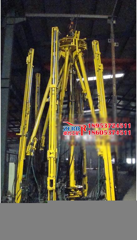 1、炮眼打完后,先將各動臂收攏掛在掛鉤上,然后將支撐臂油缸收回,再將調高油缸收回,換至提升勾頭上,防止鉆架偏斜,最后收攏支撐臂并捆好。
