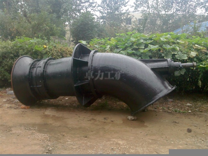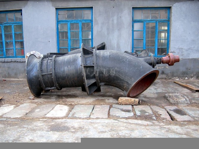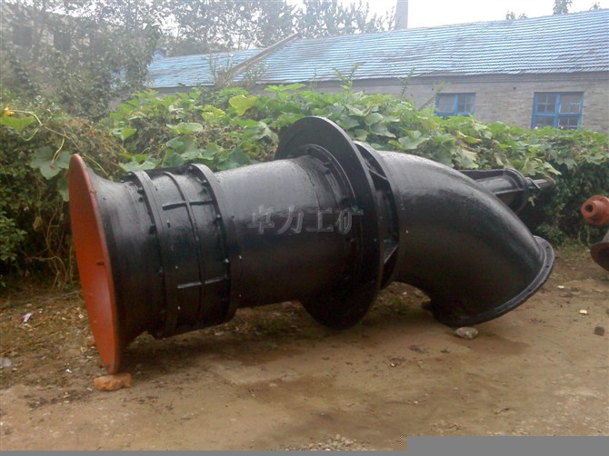 結構特點: ZLB、ZLQ型泵系單級立式軸流泵。其結構分為泵體部分和傳動部分。泵體部件有喇叭管、葉輪部件、導葉體、彎管、軸承、填料函和聯軸器等。傳動部分有傳動軸的一端通過聯軸器與電動機連接,另一端與水泵連接。泵的軸向力由電動機座(或軸承座)內裝的軸承來承受。軸封采用填料密封。傳動中水泵葉輪的轉向,朝吸入口看,為逆時針方向。