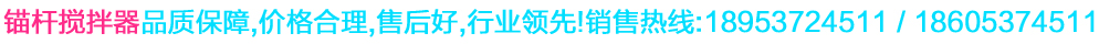 產品用途:錨桿攪拌器與錨桿鉆機配合使用用于巷道支護中樹脂類錨桿的攪拌和安裝擰緊錨桿螺母。攪拌,使物料混合均勻。錨式攪拌器攪拌區域大,適用于粘度稍大的物料。